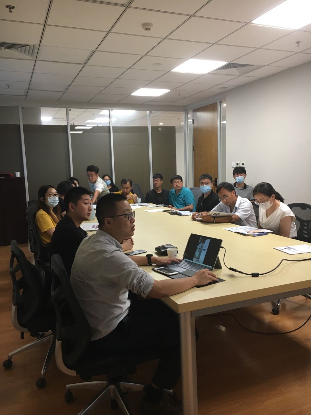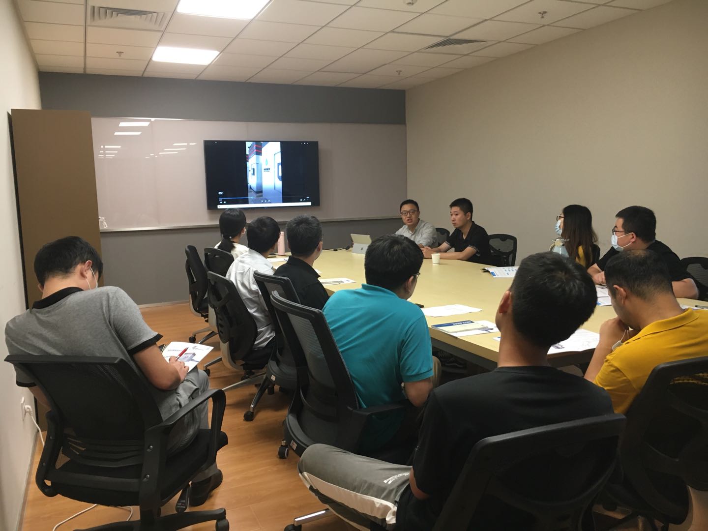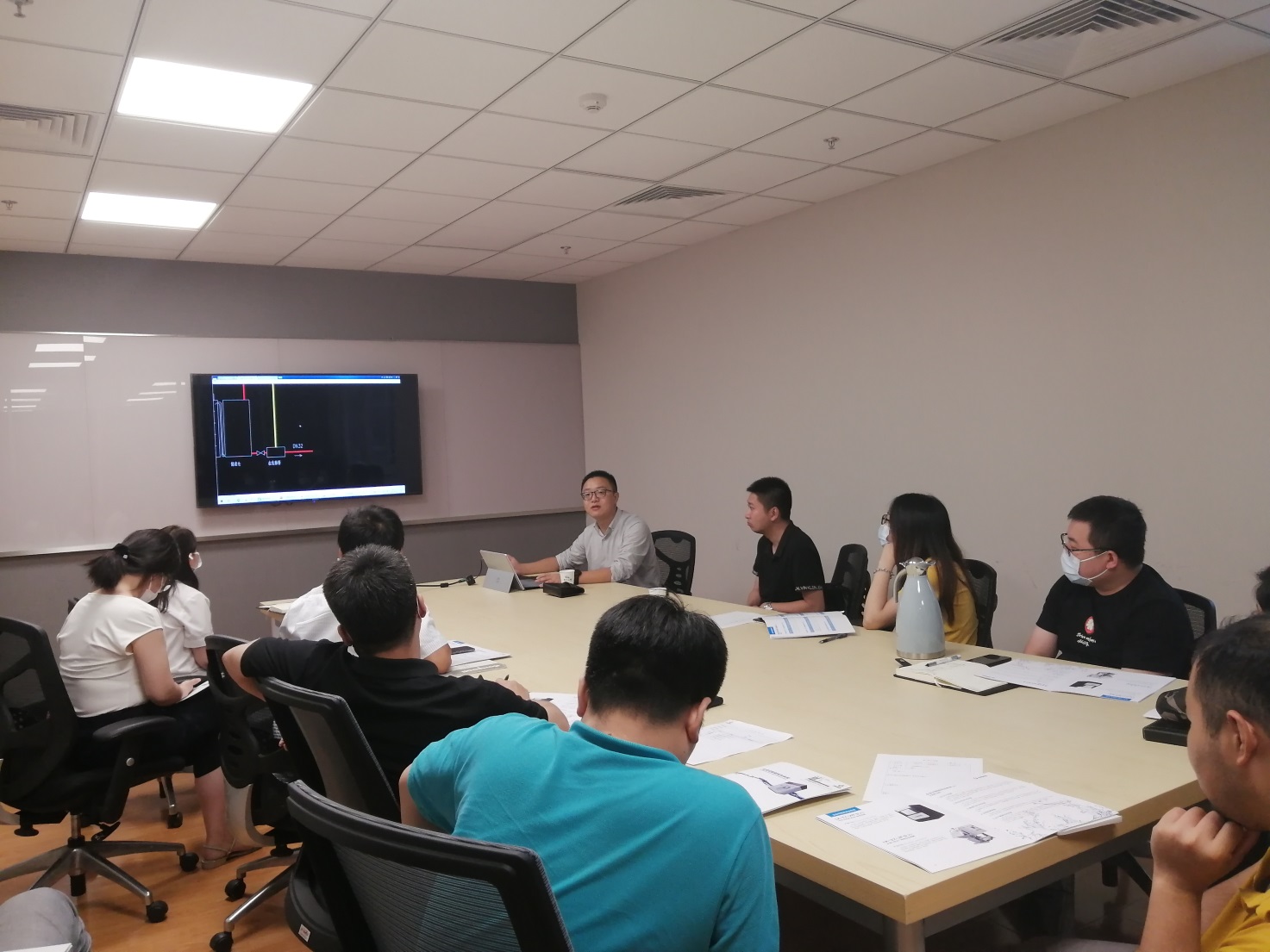 7月9日下午,環境工程室積極響應公司號召,在不影響生產任務的前提下,組織部門員工進行培訓工作,本次邀請四川朗科新創環保設備有限公司技術人員林子夏對全自動智能加藥系統進行全部室交流。廠家技術人員對全自動加藥系統進行了詳細的講解,包括設備的構造、運行原理、技術參數、控制系統、經濟分析等方面,使設計人員對加藥系統有了全面的了解,為設計工作打下良好基礎。